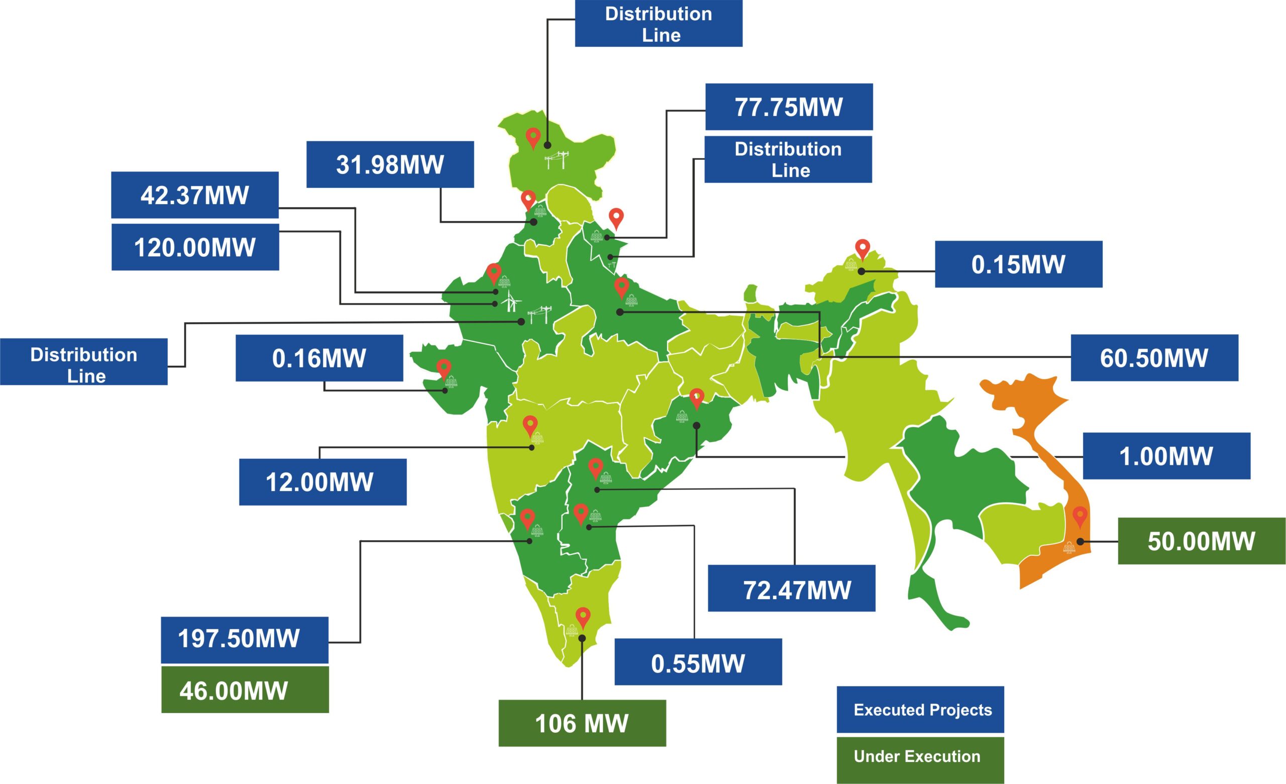 Presence in more than 15 states in India across Ground Mounted & Rooftop Projects